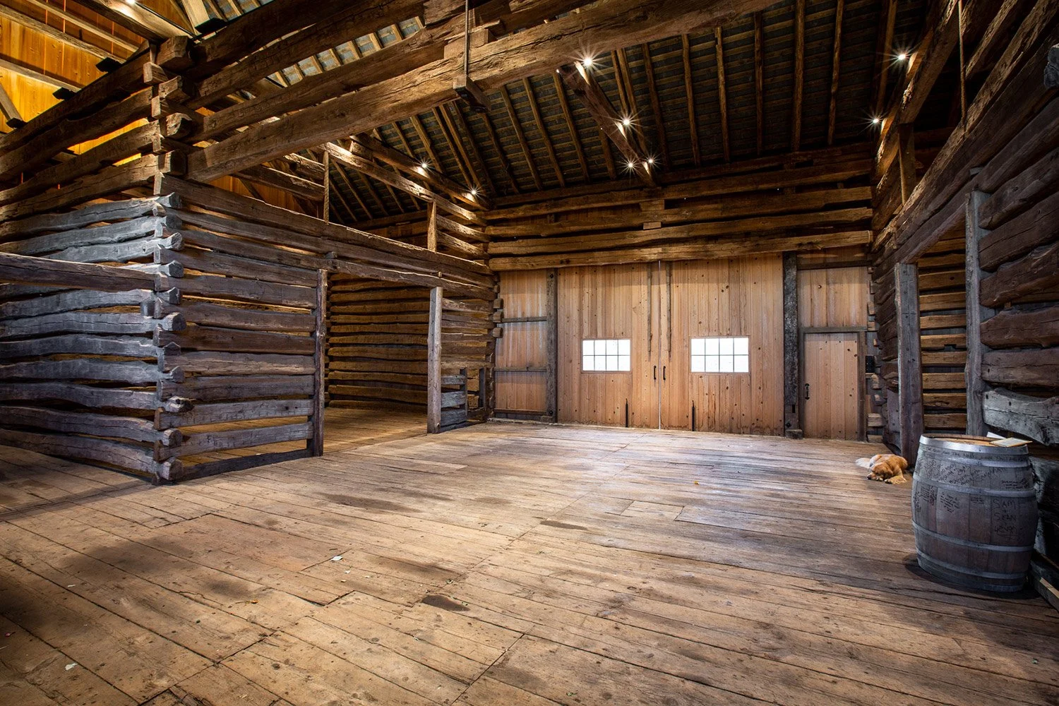The property had a very old log crib barn that was in disrepair. It had been subject to some bad additions over the years and suffered from the same things a lot of old barns have….sagging roof, deteriorated wood siding and holes in the floor. Our job was to tune it up and take it back to what it may have looked like a long long time ago. B&D Builders replaced some bad logs, installed new Cypress siding, built new window sash and doors and gave it a new real slate roof.