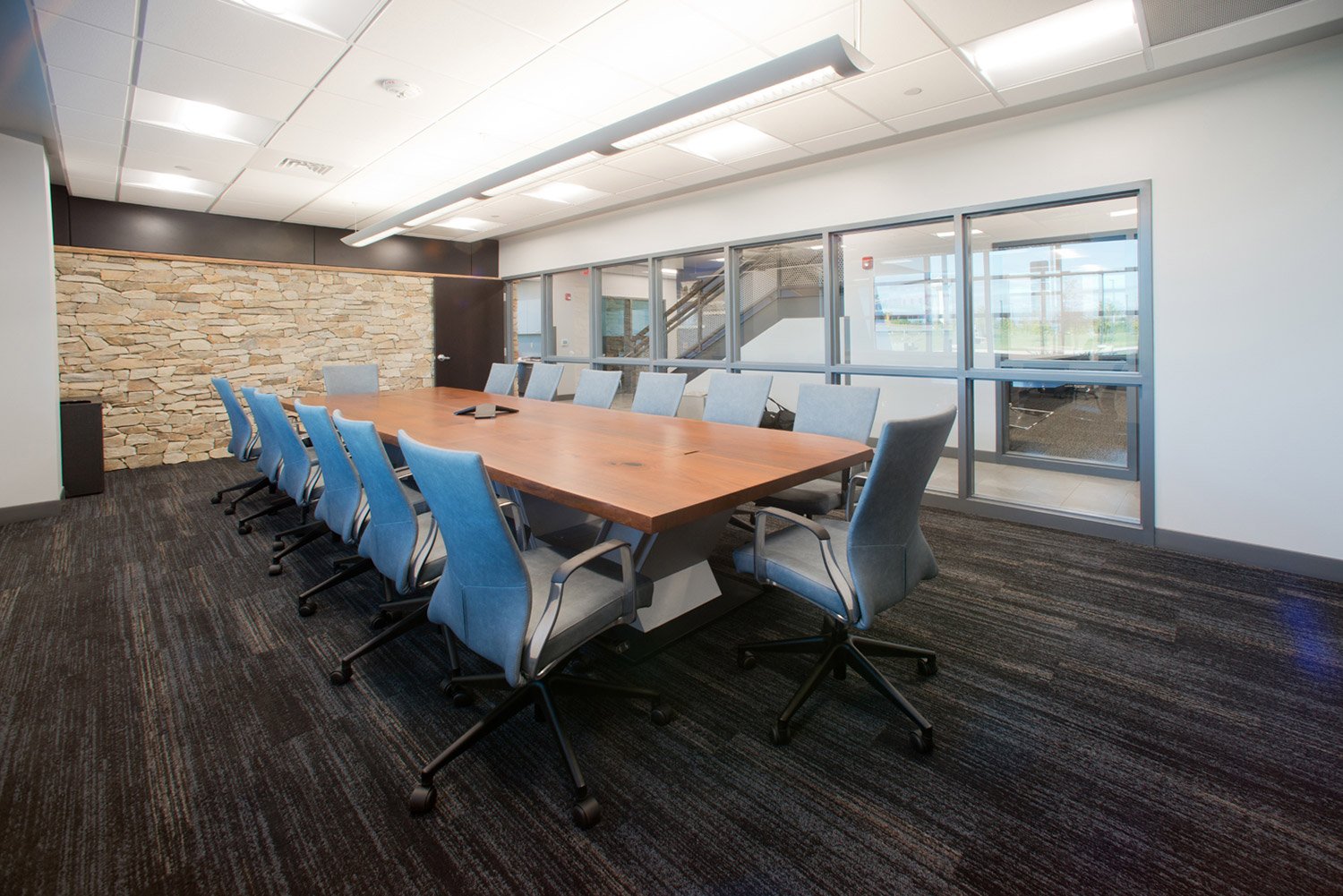 This building – first – needed to be functional and efficient containing shop areas, material inventory warehouse storage areas, equipment repair areas and office space. The shops and warehouse areas needed to be mostly free of interior structural columns which pushed us towards utilizing a pre-engineered metal building for the main structure. Overhead bridge cranes make it possible to move anything pretty much anywhere inside these areas. Translucent insulated wall panels do a nice job of illuminating the interiors with natural light during operational hours.
